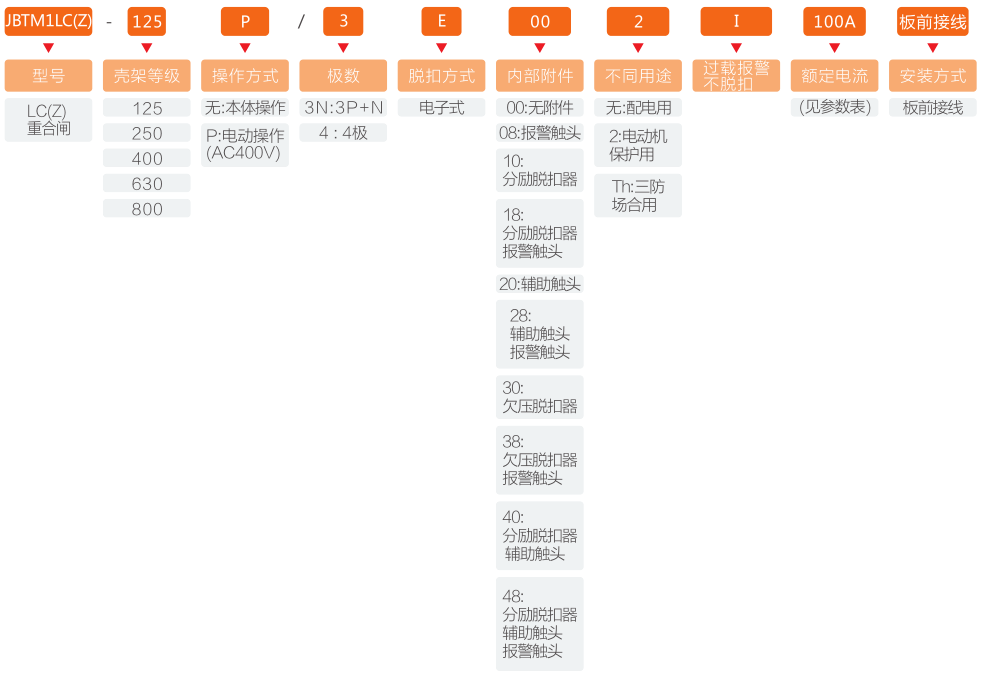 JBTM1LC(Z)-250分為:100A、125A、140A、160A、180A、200A、225A、250A;